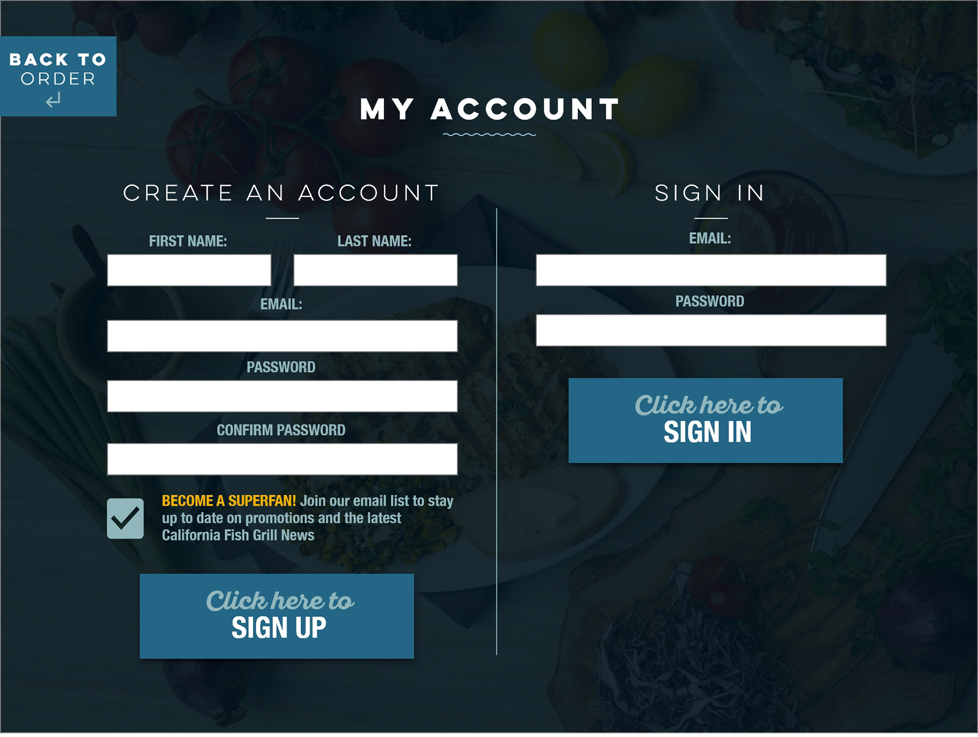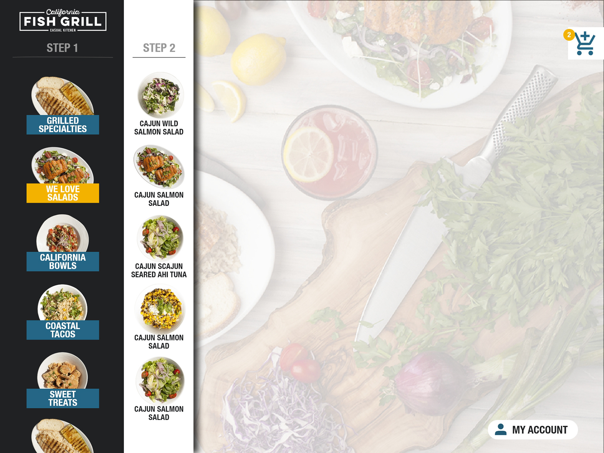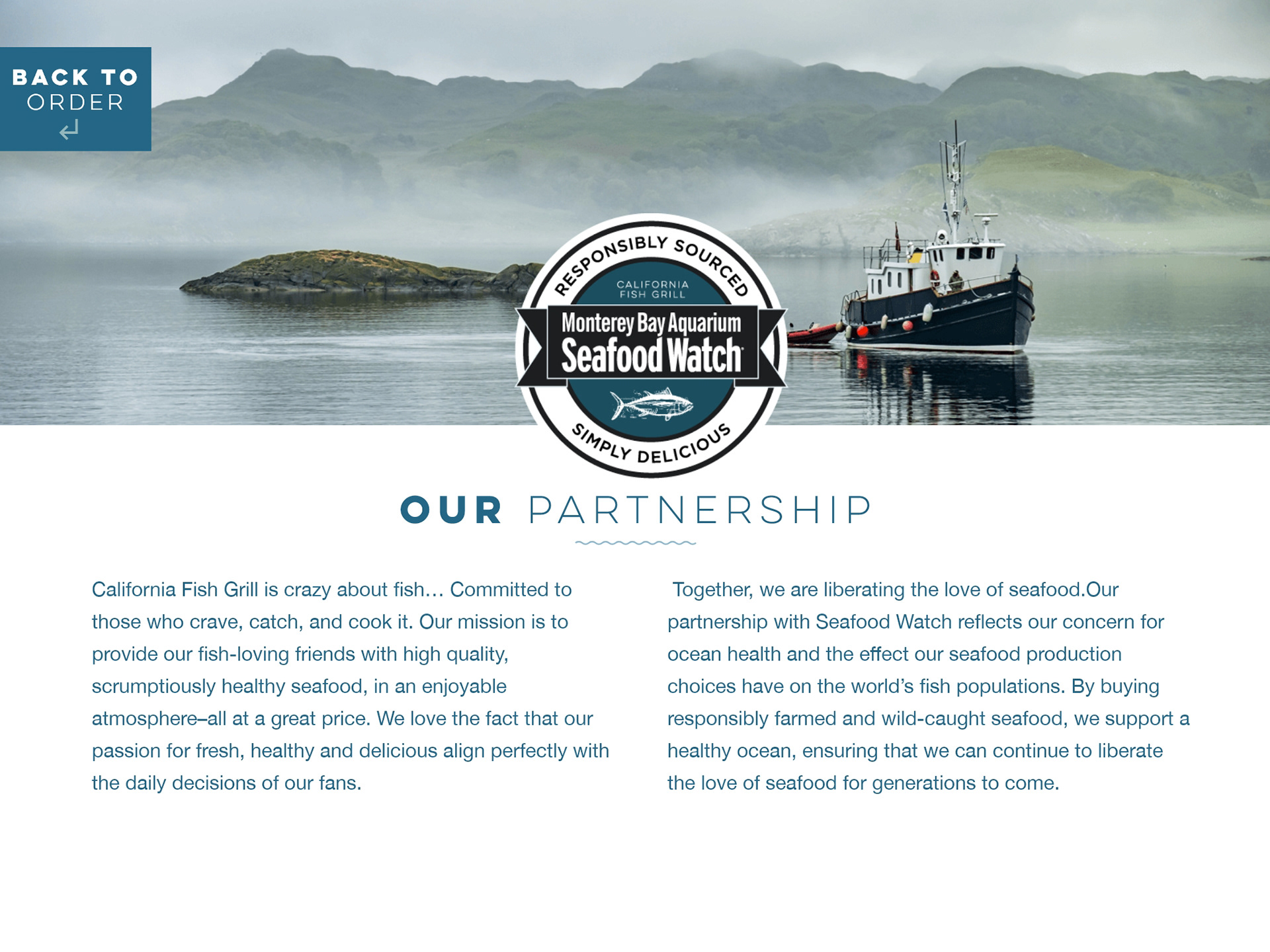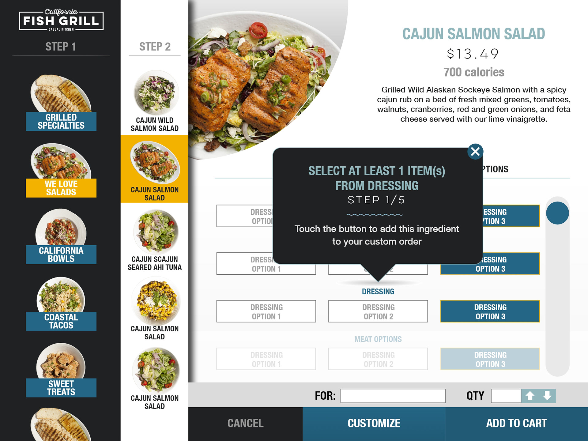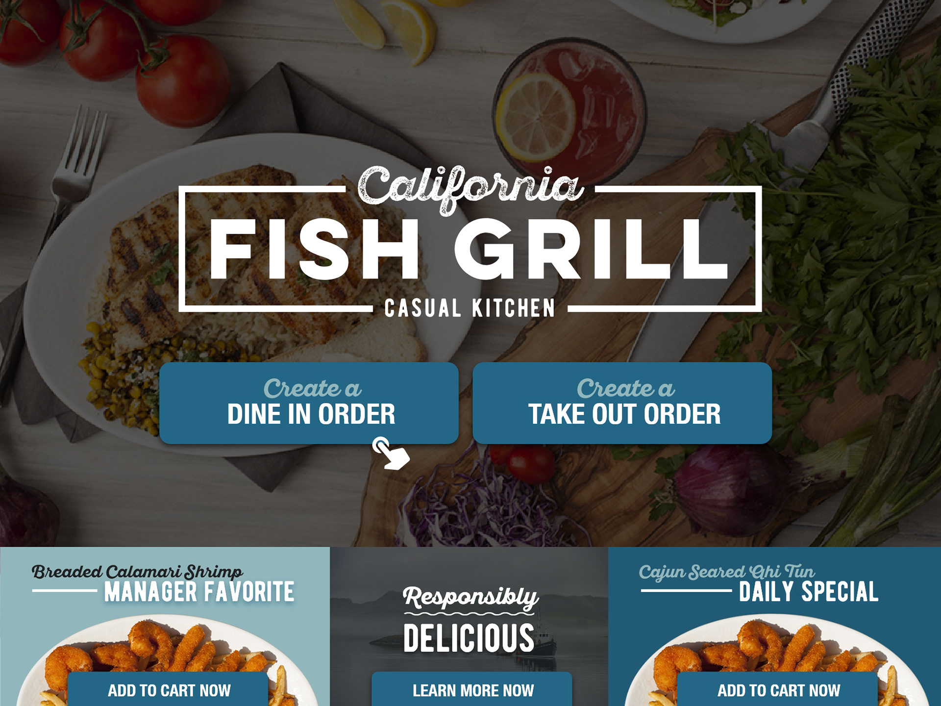 California Fish Grill Kiosk Tablet Design for In-House Ordering and Pickup
